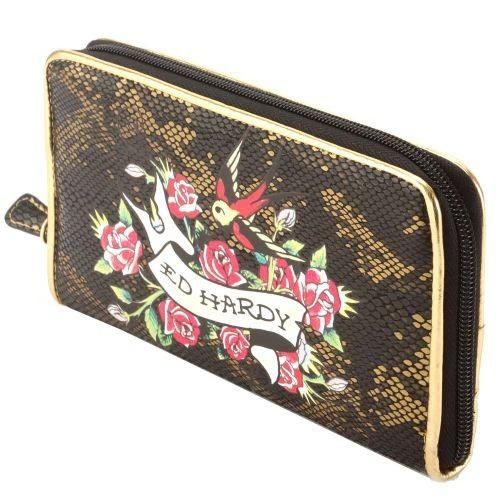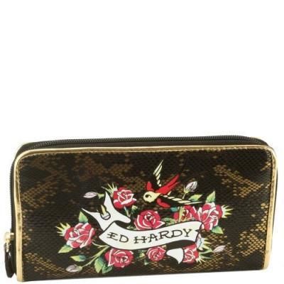 Ed Hardy Bed of Roses Zip Around Wallet - Black/EH1PPU068BED-BK